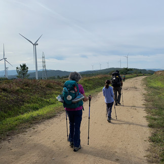 Today we once again walked through rolling green forests of eucalyptus and pine trees. Similar to our hike in Pamplona from Zariquiegui, we walked through fields of impressive wind turbines. They dot the landscape all over Spain. We have learned that 23% of Spain’s power comes from wind! Seeing these never gets old as it gives us hope that one day the U.S will adopt such forward thinking technology to a level that Spain has.