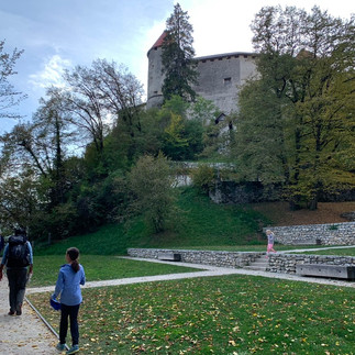 We had a good night's sleep, a quick breakfast of cereal and scrambled egg on toast and headed out for our 1st RV trip. We started with something nearby, the town of Bled known for its beautiful Lake Bled, which surrounds Slovenia's only island, Bled Island, and Bled Castle. The driving was fairly easy, and we found an amazing 1st camp ground to park the RV for the day, River Camping Bled. We lucked out as it was the last day it was open for the season and had plenty of space.